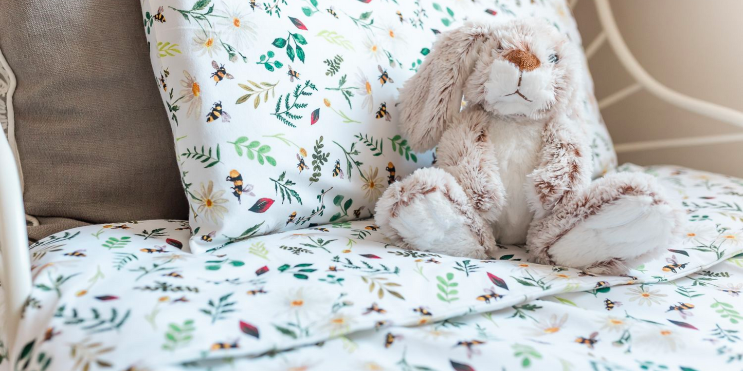 Wild Bee White Organic Cotton Toddler Duvet Cover and Pillow Case Set
